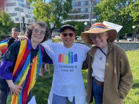 As a group, we walked down the east side of the park and took up a position off to the side of the Mayday crowd. We held our “Love Is Louder” signs, wore our rainbows, and stood as a quiet witness that there is a more inclusive Church. As we walked to our spot, several people joined us. One man, who looked like he was on the verge of tears, thanked us for being there.