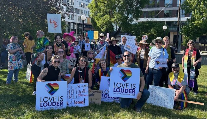 We stayed for close to two hours. Several in our group were interviewed by the media, including KOMO 4 and KUOW. We have sent a letter to the mayor signed by 28 clergy of various denominations saying love is louder than hate; Jesus’ love is for all; and these Christians don’t speak for us.